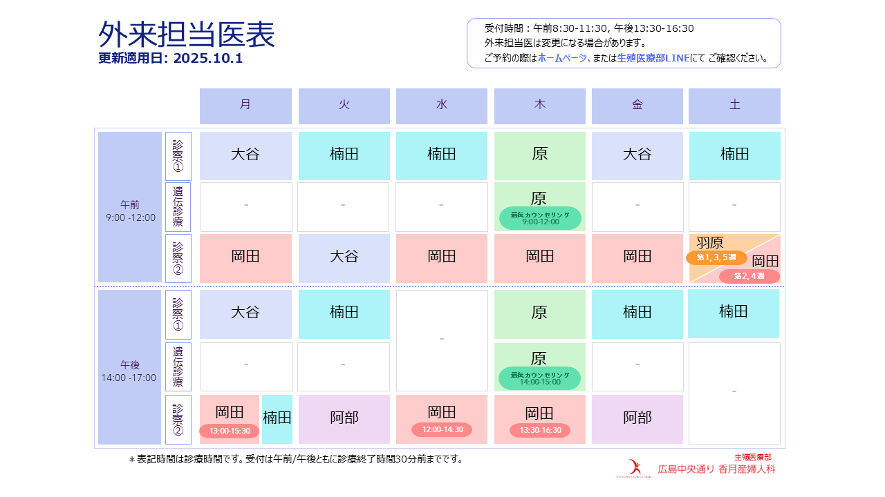 【生殖医療部】外来担当医 変更のお知らせ(更新適用日10月1日)